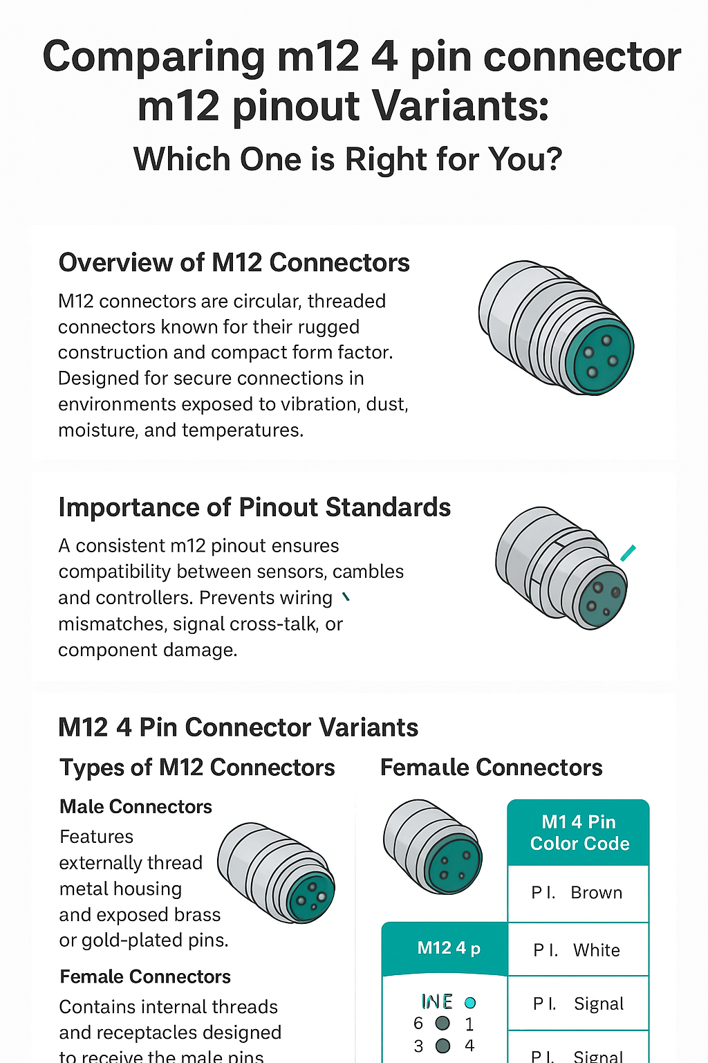 The m12 4 pin connector m12 pinout is one of the most widely used connectivity standards in industrial automation, sensors, robotics, and machine control systems. With multiple pinout configurations, color codes, and connector types available, choosing the correct M12 variant can feel overwhelming—especially when system reliability and signal integrity are on the line. This guide breaks down each connector type, pinout standard, and application to help you determine which M12 4-pin configuration best aligns with your project.